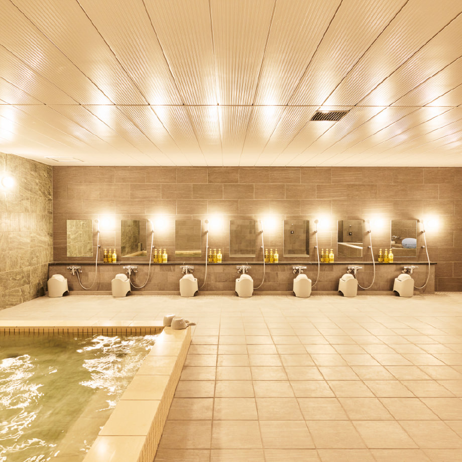 広々とした湯船に身をゆだね、旅や仕事の疲れをリセット。サウナや休憩処、マッサージチェアも完備し、癒しのひとときをお過ごしいただけます。各種アメニティも充実し、手ぶらで気軽にご利用いただけます。